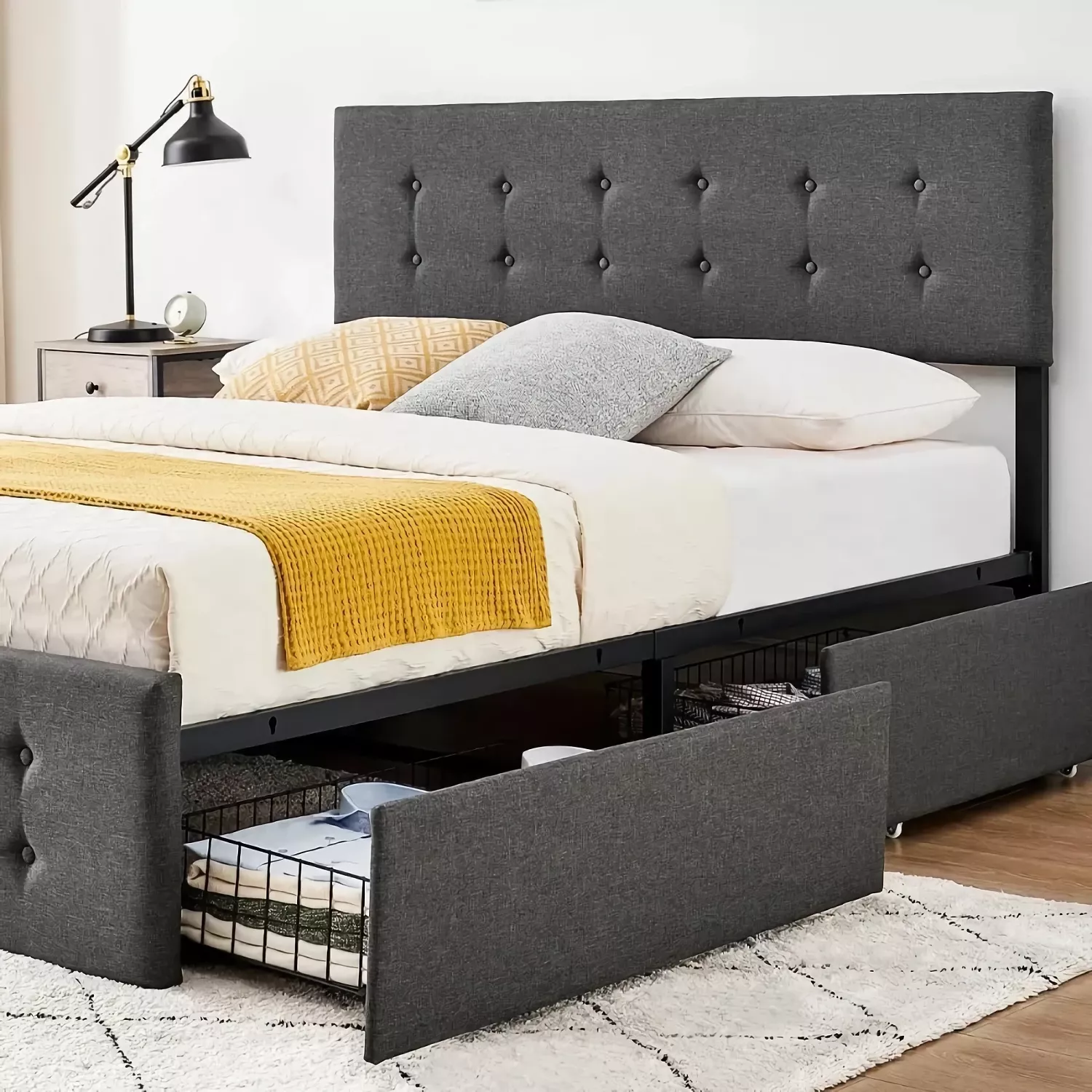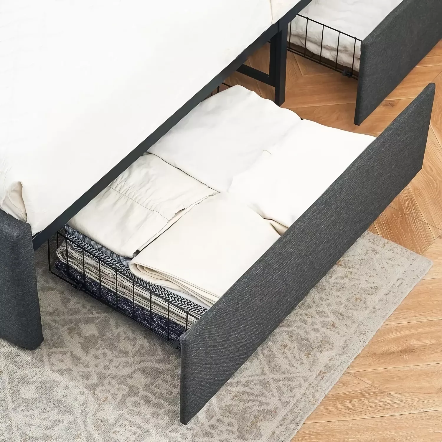 Full Size Upholstered Bed Frame with Storage Drawers & Adjustable Headboard